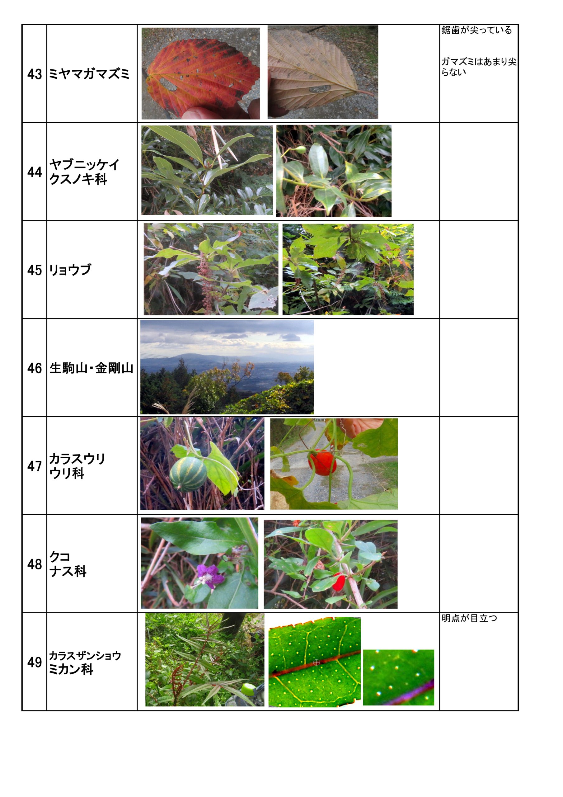 八幡神社より雲渓川を才所までを植物観察しながら秋の紅葉を楽しみました。昼食場所の尾根からは遠く金剛山が見えています。 以下、今回見られた一覧を添付します。
