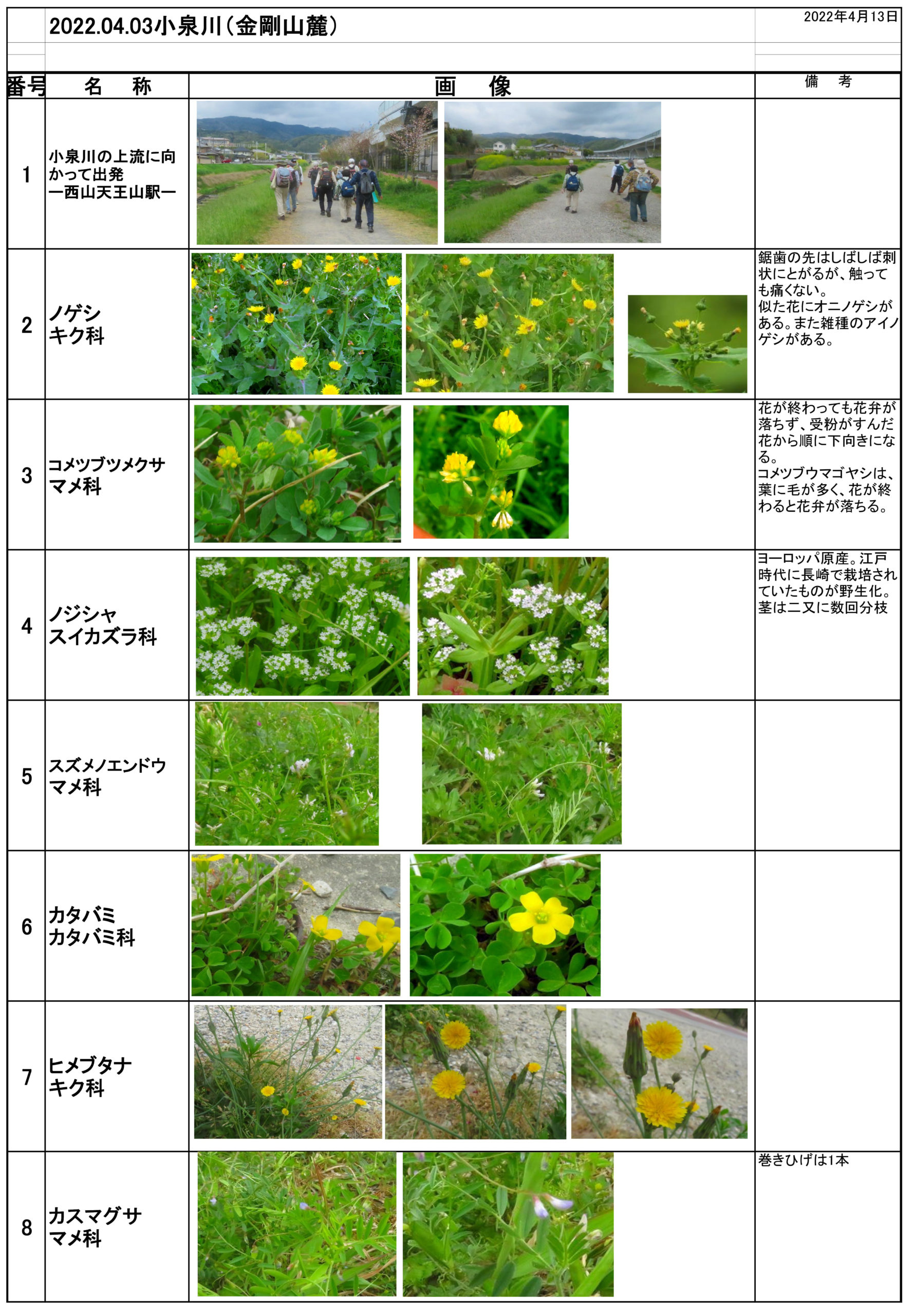 2022年4月15日 / 最終更新日時 : 2022年4月16日 neitaka-main 未分類 小泉川(長岡市) 西山天王山駅(阪急)より小泉川の上流に向かって西山キャンプ場まで、春の草本・樹木を観察しました。記録を見ると前回の訪問は2018年4月11日(24期入会歓迎?)でした。